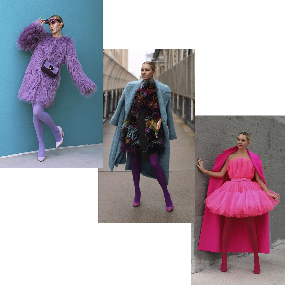 Mou inspirací pro tvorbu ilustrací byla slavná stylová blogerka Blair Eadie. Je mistryní v zařazování barevných punčocháčů do svých outfitů. Všechna ta krása se do mých setů nevešla, a tak vám chci ukázat výběr jejích fotografií. Taková krása a mistrovství stylingu je nutností vidět.