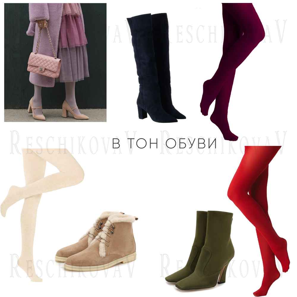 Punčocháče můžete si také vybrat naladěno boty nebo sukně/šaty/kalhoty. To znamená, že jejich barva by měla být stejné sytosti.