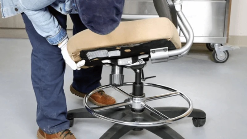 Nejčastěji se stává, že kancelářská židle s podstavcem spadne, protože je zaseknuté tlačítko nebo páka pro nastavení výšky. K tomu může dojít, pokud něco blokuje páku nebo pokud jsou díly pod sedadlem uvolněné nebo ohnuté. Někdy se malá součástka uvnitř zasekne a nadále tlačí na ventil, který se otevírá. I malé stisknutí tlačítka může způsobit pád židle.