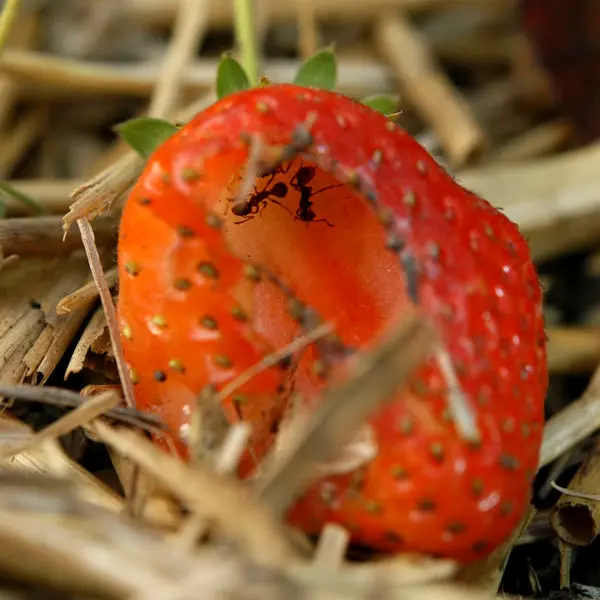 Poškození rostlinVytvářením víceúrovňových tunelů v půdě mravenci někdy poškozují kořeny, zejména u mladých sazenic, které ještě nestihly zesílit. To vede ke zpomalení růstu a v některých případech i k úhynu rostlin. Například sazenice rajčat nebo paprik vysazené v půdě s aktivní kolonií mravenců mohou uhynout během několika dní. Mravenci nejsou o nic méně nebezpeční ani pro ovocné plodiny: jejich kořistí se často stávají zralé jahody, maliny, meruňky a švestky. Hmyz vykouše dužinu a zanechává po sobě zkažené plody, které nejsou vhodné ke konzumaci.