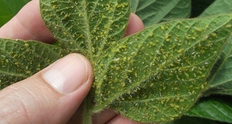 - Lepkavý bílý film na povrchu listové čepele a pupenů.