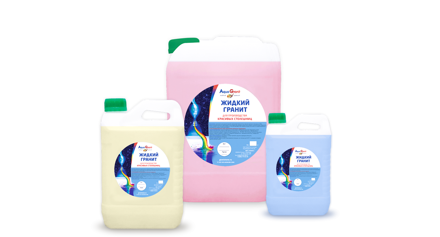 AquaGranit je druh tekuté žuly, která je ideální pro výrobu pracovních desek a dalších produktů s jednobarevným monoplastickým povrchem metodou stříkání. Je také vhodná pro nanášení