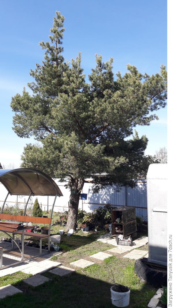 Borovice se tvoří od dětství. A dělají to každý rok. U takto velké borovice se odřezávají pouze překážející větve. Jen mějte na paměti, že čím více odstraníte, tím více větví vyroste. Nyní budou 2 vrcholy. Pokud je začnete bourat, budou 4 atd. v geometrickém postupu.