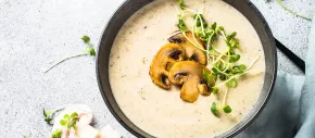 Protože hříbky nejsou vždy po ruce a existuje touha jíst houbovou polévku, klidně použijte žampiony. Jídlo se ukáže jako neméně zajímavé, harmonické a chutné, pokud se k neutrálnějším než hříbkům přidá světlé koření. Prohlédněte si naši sbírku houbových polévek a vyberte si svůj recept.