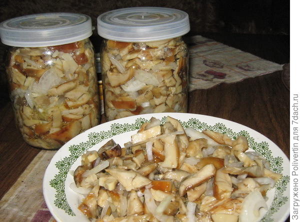 Pauline. Moc děkuji za recept. Porovnávám, sklenice vypadají po experimentu tak povědomě (doslova ze včerejška). Ještě předevčírem by jim to připadalo podezřelé kvůli barevným skvrnám. Teď mezi námi Valuisty, takhle by to mělo vypadat. Jen se bojím shromáždit konkurenty ve svých lesích. )) Tuto litrovou zavařovací sklenici jsem získal z 1 kg pytle. (a co vy?) Z nějakého důvodu doporučují používat pouze čepice (to jsem udělal já. ale co za to mohou nohy?). Miluji experimenty a racionalizaci. Včera jsem je vařila 70 minut. (to je pro přepojištění), vodu jsem několikrát vypustil, dokud se nevyjasnila. Přidala jsem minimum soli (podle intuice od oka), dva nadrobno nakrájené česneky, kopr.) Počkala jsem, až vychladne a dala do lednice. Dnes jsem zavařovací sklenici ochutnával půl dne až do večera, teď jsem do kaše přidal zbylý lák. Vše. Nechci čekat 40 dní. Pravda, na záruku si musíte ještě pár dní počkat (v případě, že jste si tam muchomůrky nevšimli). ))