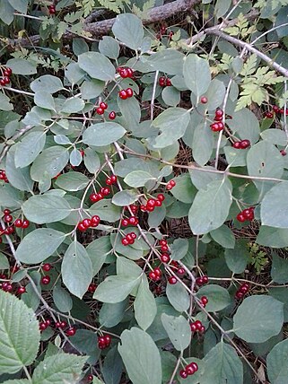 Zimolez pravý (vlkovník) (lat. Lonicera xylosteum) se žlutobílými květy a červenými bobulemi, listy jsou dole načechrané. Ve středním Rusku se zimolez pravý vyskytuje na okrajích lesů a v hájích a je jedovatý. V jižní části Ruska divoce neroste.