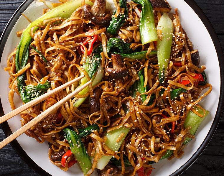 Jako druhý chod je skvělý recept na těstoviny s pak choi zelím. Kromě čínské zeleniny obsahuje zálivka houby, papriky, aromatické přísady a bohatou pikantní omáčku. Pro servírování v restauraci si připravte hrst kešu oříšků.